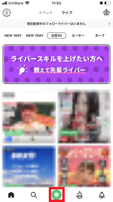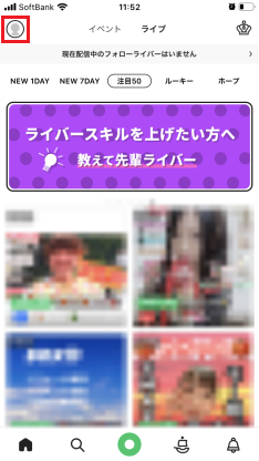 配信の準備が終わったのでプロフィール編集画面左上の<をタップして、ホームに戻りましょう。