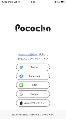 お持ちのSNSアカウント1つを選択し、規約に同意してください。