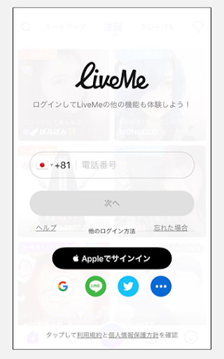 では、Live.me(ライブミー)を使うための手順を説明します。