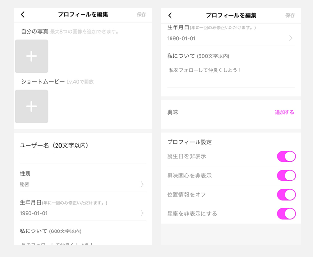 プロフィール画面で必要な情報を入力するとログイン設定は完了です。