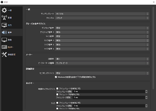 BGM・マイクを使用するための設定です。ライブ配信を行うのであれば、マイクを使用することをおすすめします。きれいな音質でライブ配信をしている方が、視聴者が集中してあなたの配信を見ることができます!