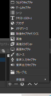 OBSの場合は、「ソース」と書いてある部分の「+」をクリックし、自分が使いたいソースを選択します。視聴者に見せる画面の設定をします。例として、ゲーム配信ならゲーム画面を映すための設定です。頻繁に使うキャプチャー方法は主に4つです。