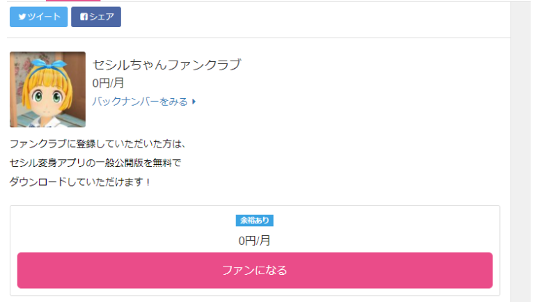 ファンティアにログインできたら、下記のセシルちゃんファンクラブからファンになります。