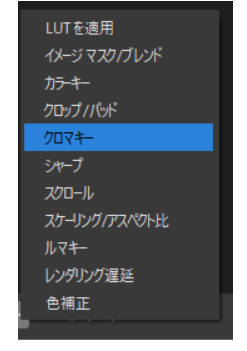 エフェクトフィルタの下にある「+」ボタンを押し、メニューからクロマキーを選択します。