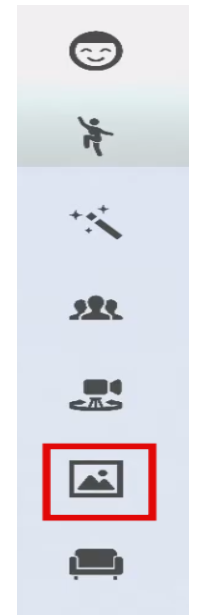 メインメニュー画面左にある上記画像の上から6番目をクリックし、背景色をデフォルトにすることで、グリーンバックにすることができます。